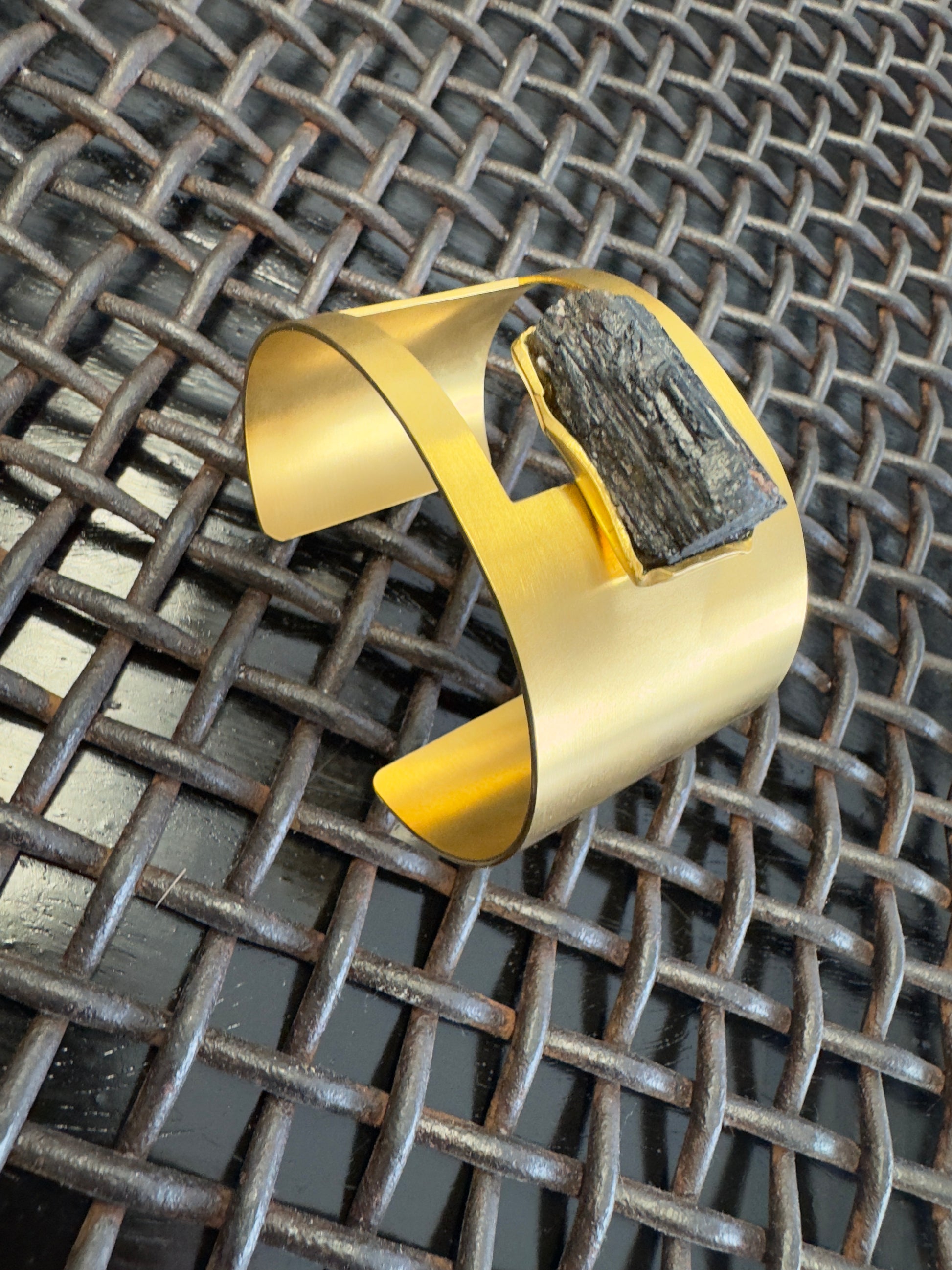 Gold plated brass cuff encased with large stone