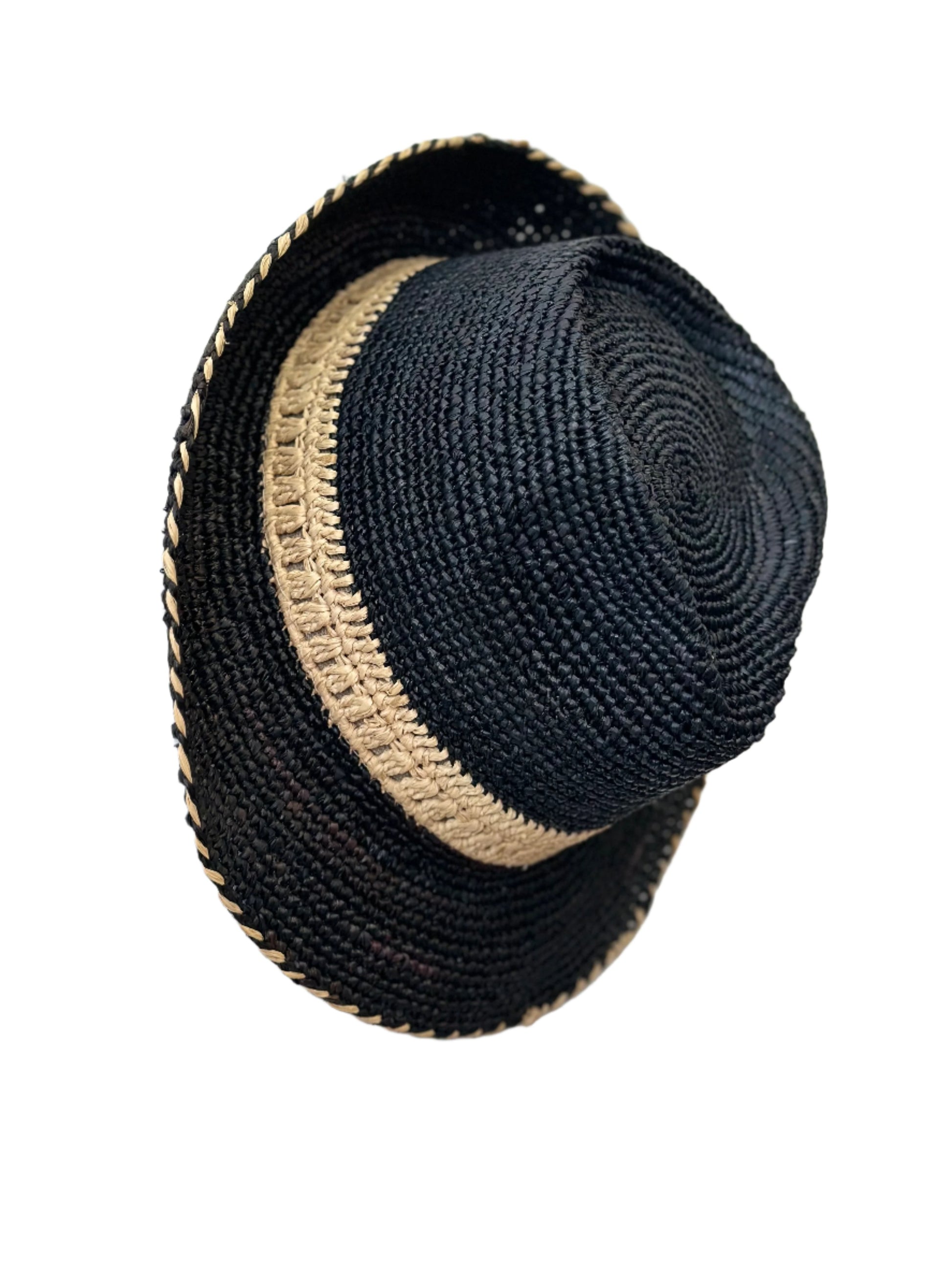 This hat is handmade in Madagascar using renewable resources—raffia. Each piece is unique, providing not just a fashion statement but a commitment to eco-friendly practices.